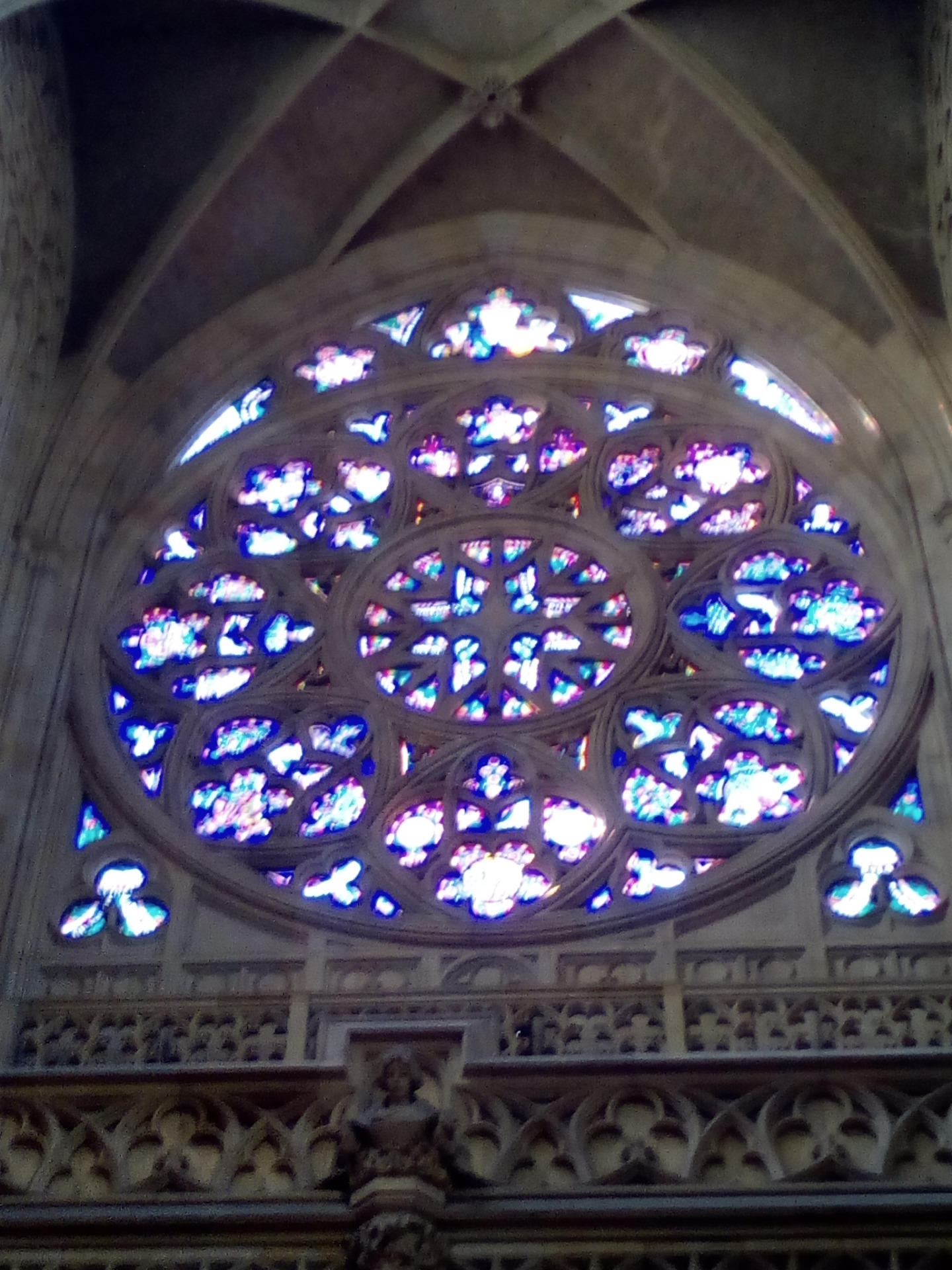 Vmísila jsem se v chrámu do davu turistů i se svými cestovními krystaly. Ty jsem kontaktně propojila se středem katedrály (zase mi v tom pomohla má dlouhá sukně až na zem... :-D ) a pak je nechala nabírat barevné rovnodennostní slunce svítící do katedrály skrze vitrážová okna. Obojí se ukázalo v podvečer jako důležité. Zároveň jsem ve středu katedrály poprosila vyšší Já mých sester, aby se přidaly ke společné práci (Diamanthea Diamond Light a Chrám Múz). Krásně jsem jejich přítomnost cítila i viděla vnitřním zrakem.
